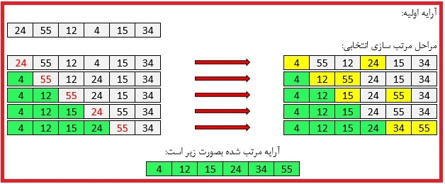 2. مرتبسازی انتخابی (Selection Sort)